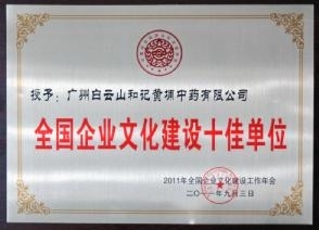 9月3日,“2011年全國企業(yè)文化建設(shè)工作年會”在大連隆重召開。在活動揭曉的全國企業(yè)文化建設(shè)十佳單位、全國企業(yè)文化建設(shè)50強(qiáng)、全國企業(yè)文化建設(shè)先進(jìn)單位、全國企業(yè)文化建設(shè)先進(jìn)基層黨組織等榜單上,白云山和黃、五糧液等為中國企業(yè)文化建設(shè)做出卓越貢獻(xiàn)的十家企業(yè)被授予“全國企業(yè)文化建設(shè)十佳單位”大獎。該評選活動由國家文化部直屬的中國社會經(jīng)濟(jì)文化交流協(xié)會等組織聯(lián)合開展。