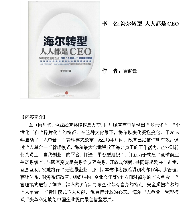 【推薦書目】海爾轉(zhuǎn)型 人人都是CEO